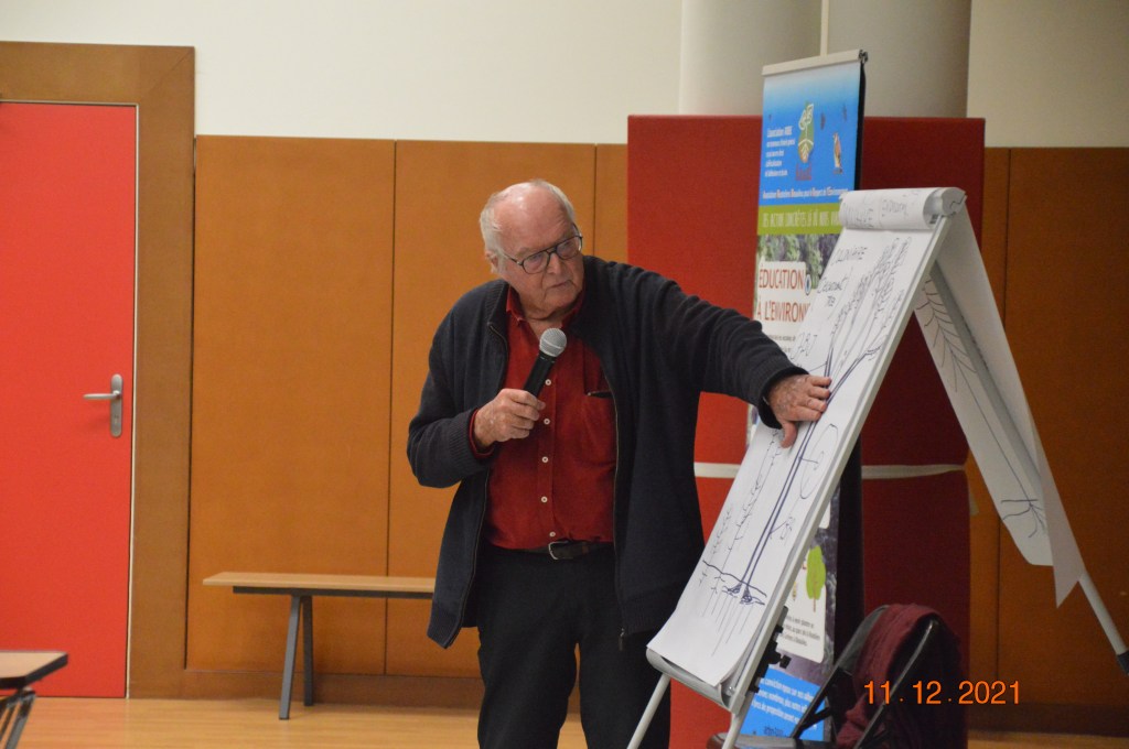 Il évoque ensuite le projet de création d’une forêt primaire dans le cadre d’une association qui s’est créée dans ce but. Les recherches d’un lieu se poursuivent après des approches dans les Vosges et les Ardennes françaises et belges. Un déplacement dans les Pyrénées orientales est programmé. Pour le moment le choix n’est pas fait. Cela intéresse beaucoup de gens surtout les jeunes. La libre évolution doit favoriser la renaissance. Il ne faut rien faire. Cela est source parfois de conflits avec les chasseurs et certains forestiers qui n’ont pas les bases de l’écologie.