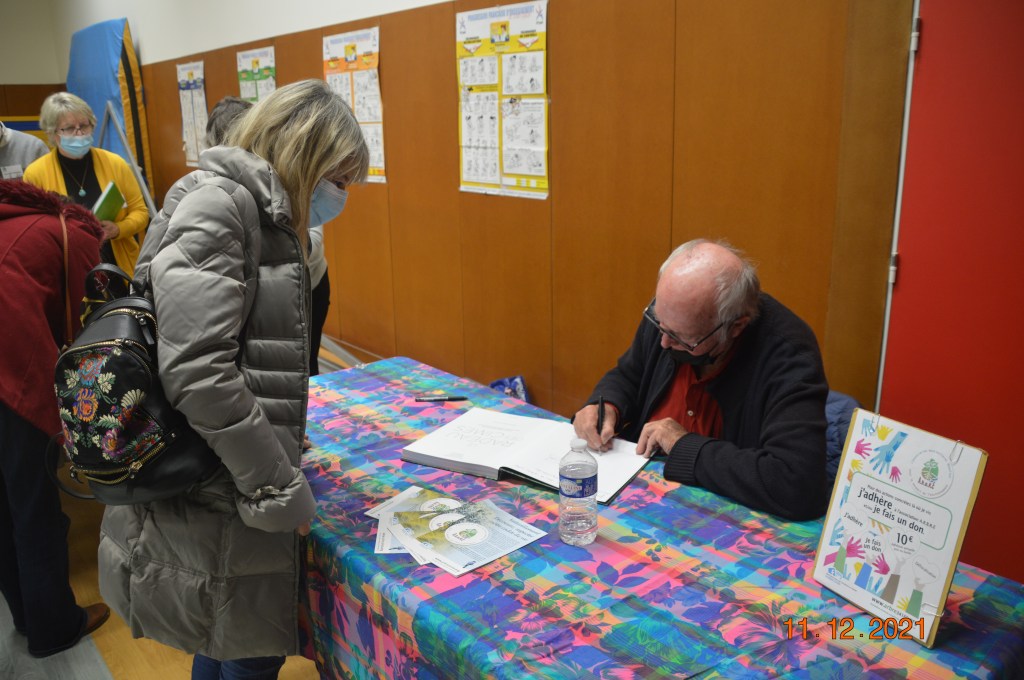 A l’issue de ces deux interventions passionnantes, Francis Hallé a dédicacé avec gentillesse ses ouvrages en vente sur place grâce à un dépôt de la librairie Sauramps. Il a même orné quelques uns de ses livres avec un joli dessin.