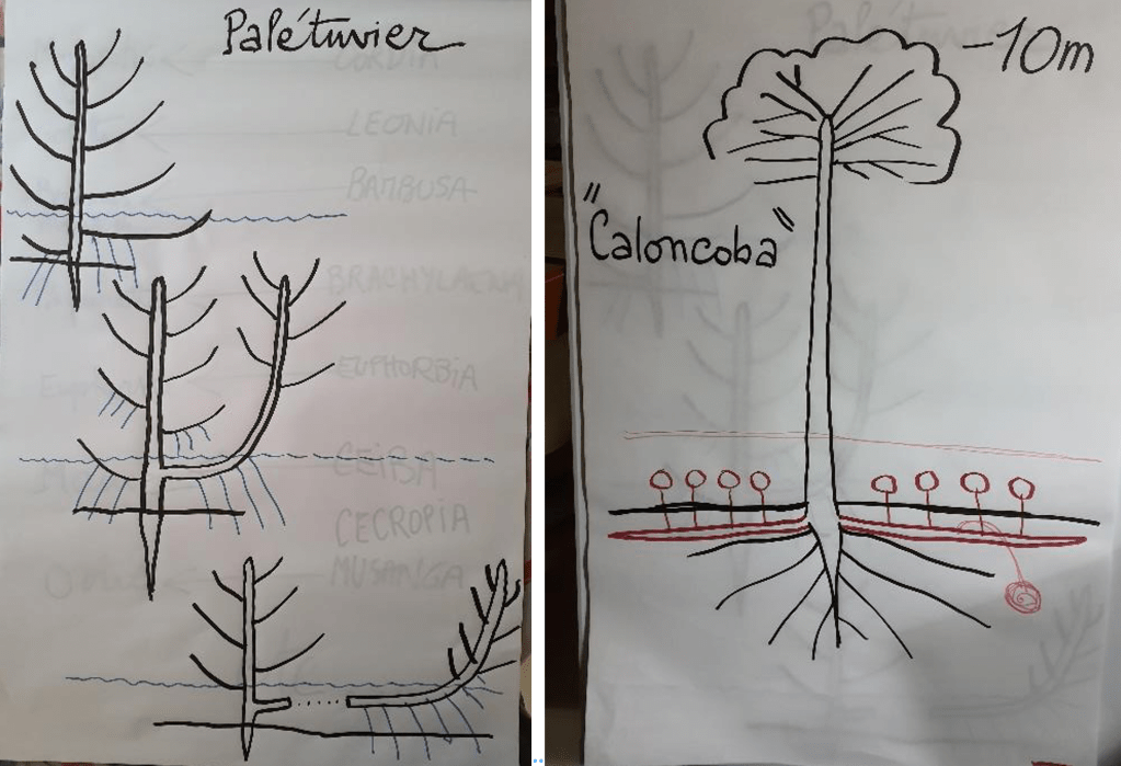 – Un arbre « qui marche » et se déplace de 4 à 5 mètres par an : c’est le palétuvier. Une branche ou réitération devient autonome. Ça pousse d’un côté et ça meurt de l’autre côté. Ça part en étoile du pied d’origine qui ne bouge pas. Cela contredit l’idée qu’un arbre ne marche pas.