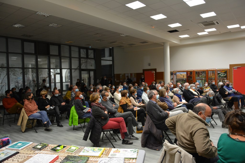 La salle du Pic Saint-Loup mise à disposition par la commune est au maximum de son occupation avec un peu plus de 100 personnes accueillies pour fêter les 10 ans de l’association A.R.B.R.E (Association Restinclières Beaulieu pour le Respect de l’Environnement).