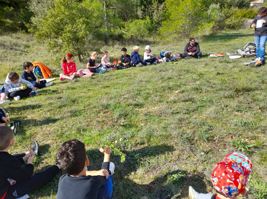 Emilie Lenglet, l’animatrice des écologistes de l’Euzière, introduit le sujet en faisant participer les enfants sur une énumération des différents végétaux.