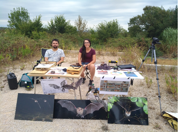 Jules est un spécialiste au niveau national de la chauve-souris : un chiroptérologue. Il rappelle son cursus universitaire et précise qu’il travaille pour un bureau d’études basé à Pézenas. Aurélia qui avait animé le 24 mars la sortie Amphibiens est Chargée d’études naturaliste et Animatrice environnement. Ce soir elle sera l’assistante de Jules. Par le passé ils ont travaillé ensemble.