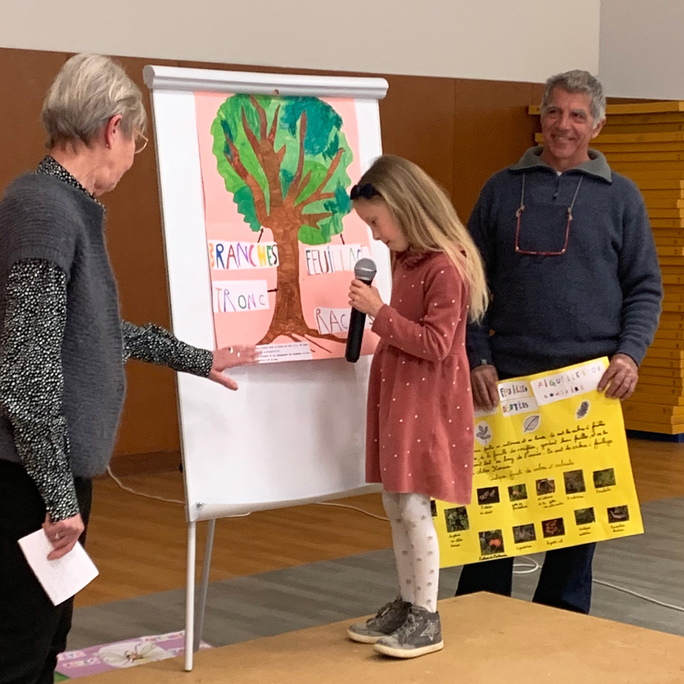 La présidente de l’association A.R.B.R.E remercie les deux fillettes du cours préparatoire de l’école primaire de Beaulieu et les deux intervenants qui ont su capter l’attention d’un public curieux de mieux appréhender le concept de Nature.
