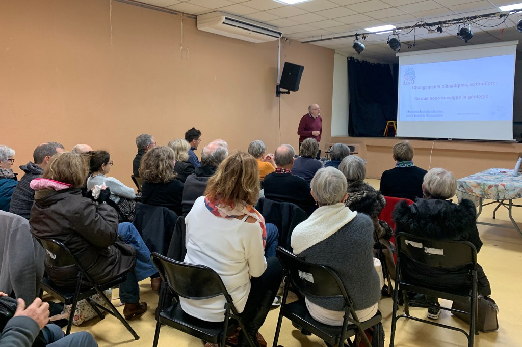 En parallèle à la COP 28 qui se tient à Dubaï aux Émirats arabes unis -coïncidence des calendriers-, l’association A.R.B.R.E a réuni une cinquantaine de personnes pour évoquer les changements climatiques et l’extinction d’espèces sous l’angle de la géologie. Cette conférence fait suite à deux sorties sur le terrain conduites par Dominique Gayte.