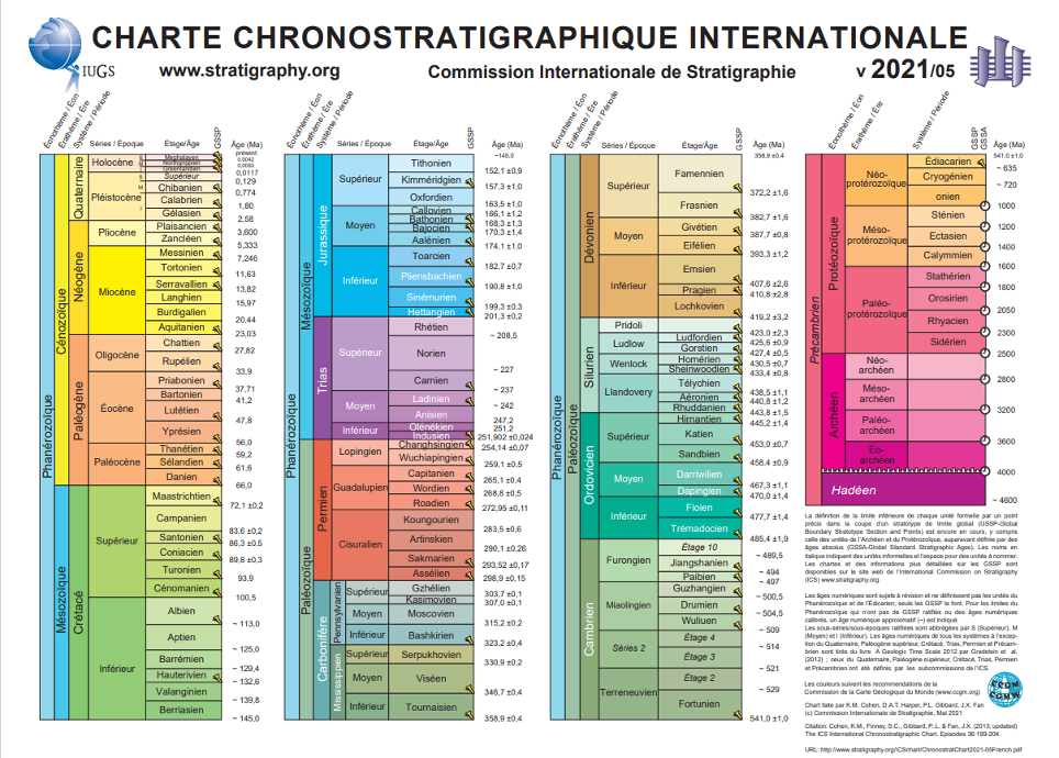 Une charte chrono stratigraphique a été élaborée à partir de la découverte des fossiles.