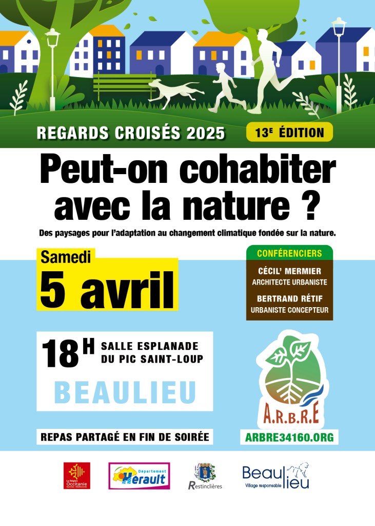 Pour sa 11e édition de Regards Croisés l’A.R.B.R.E (Association Restinclières Beaulieu pour le Respect de l’Environnement) a choisi de programmer sa soirée « Regards Croisés » au printemps :