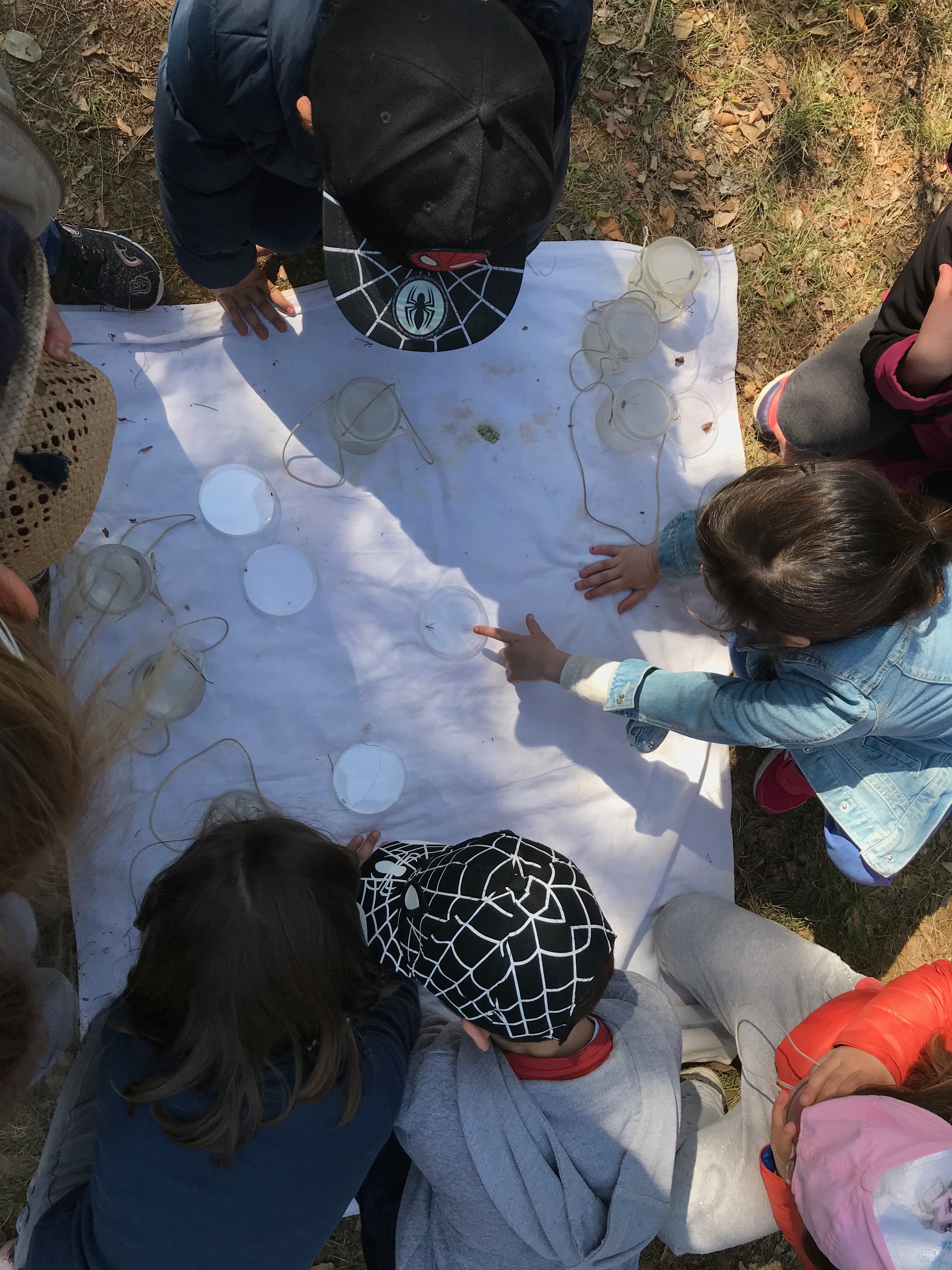 Installés en grand cercle, tous ont écouté les instructions des Ecologistes avant de se répartir en groupes de 4 ou 5, guidés par les parents, pour aller ramasser des insectes ou petites bêtes et les placer délicatement dans des boîtes transparentes, à rapporter ensuite sur un drap, à l’intérieur du cercle.