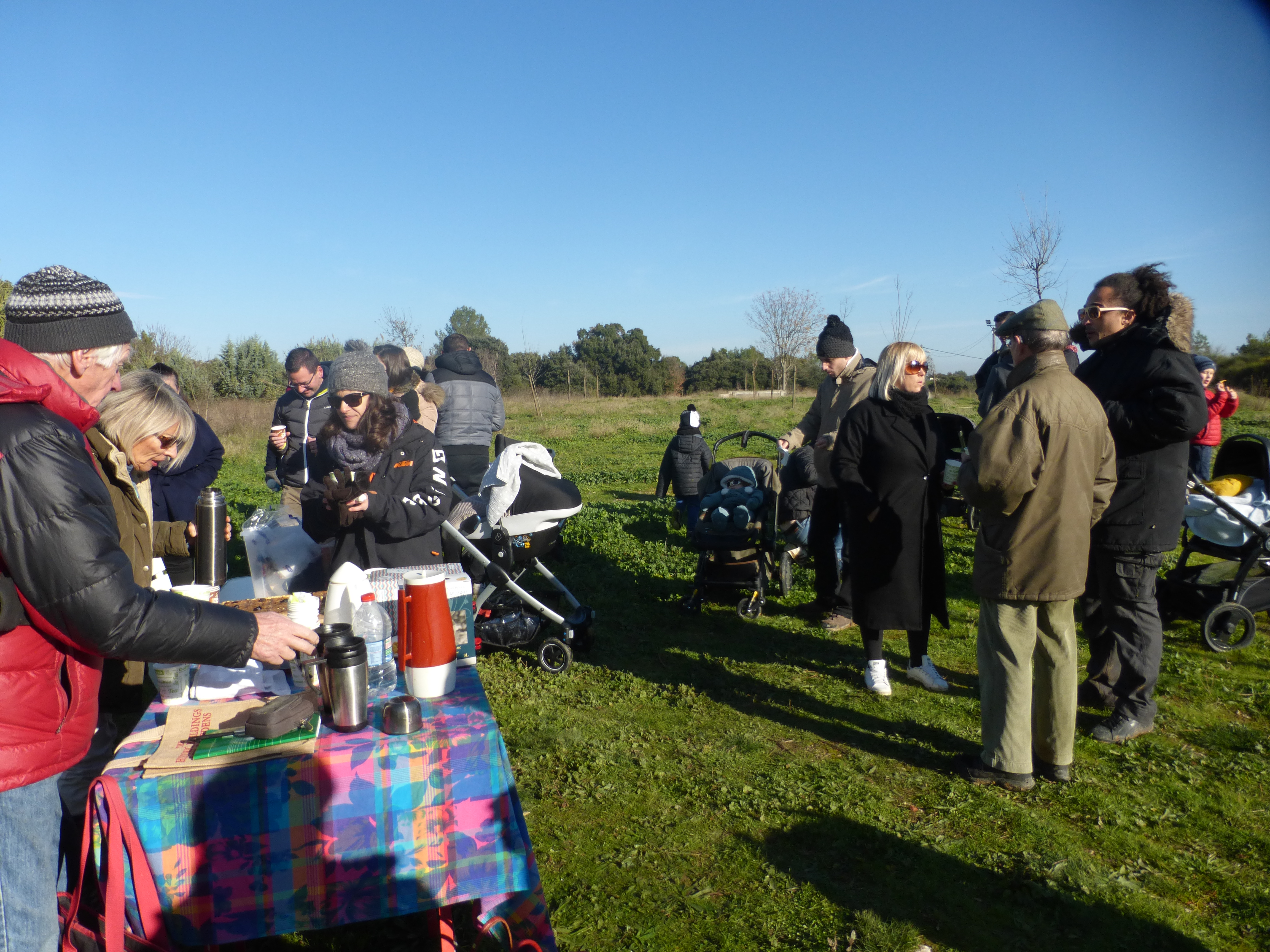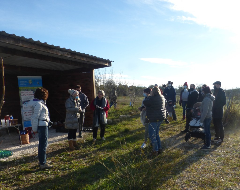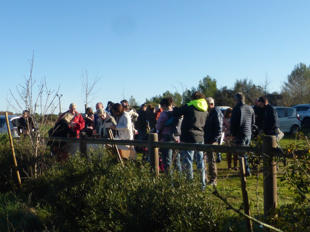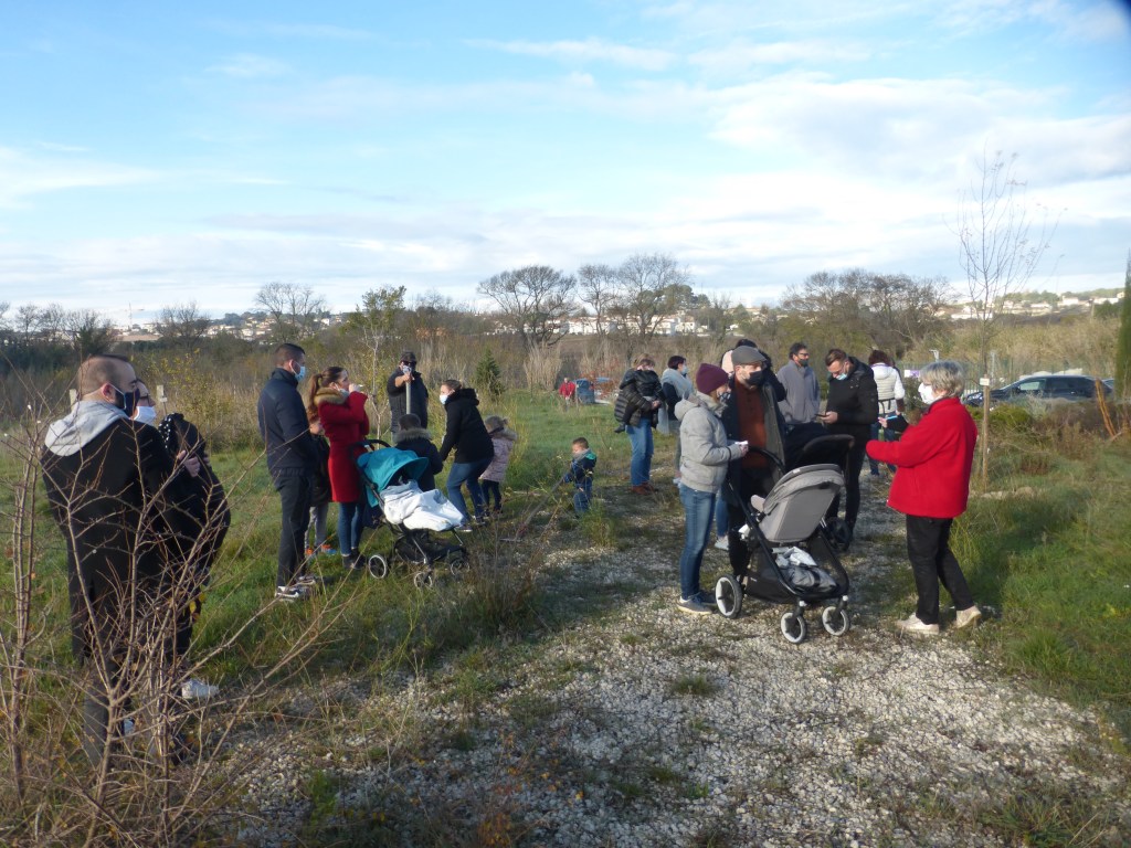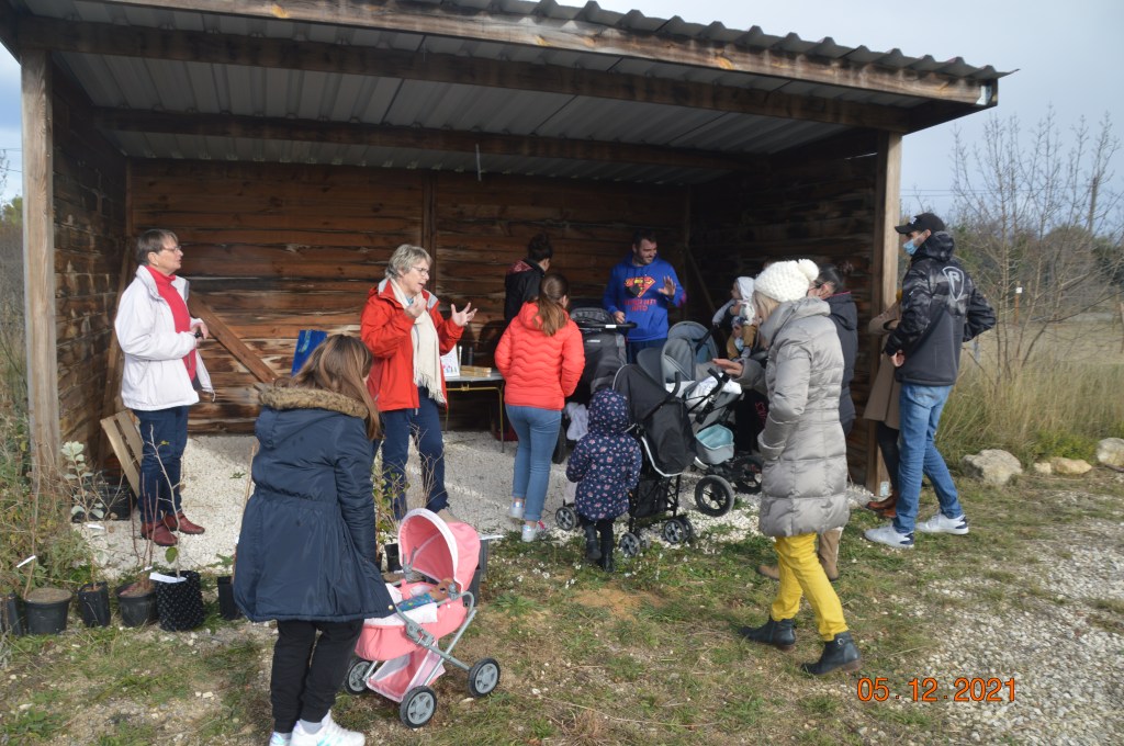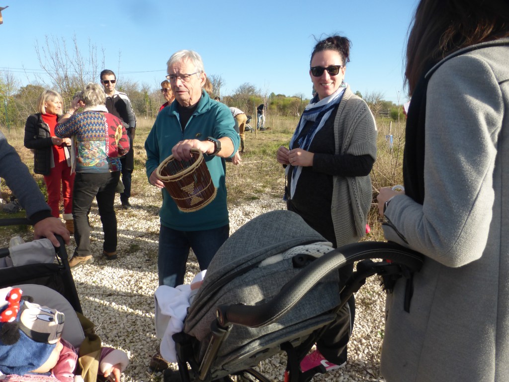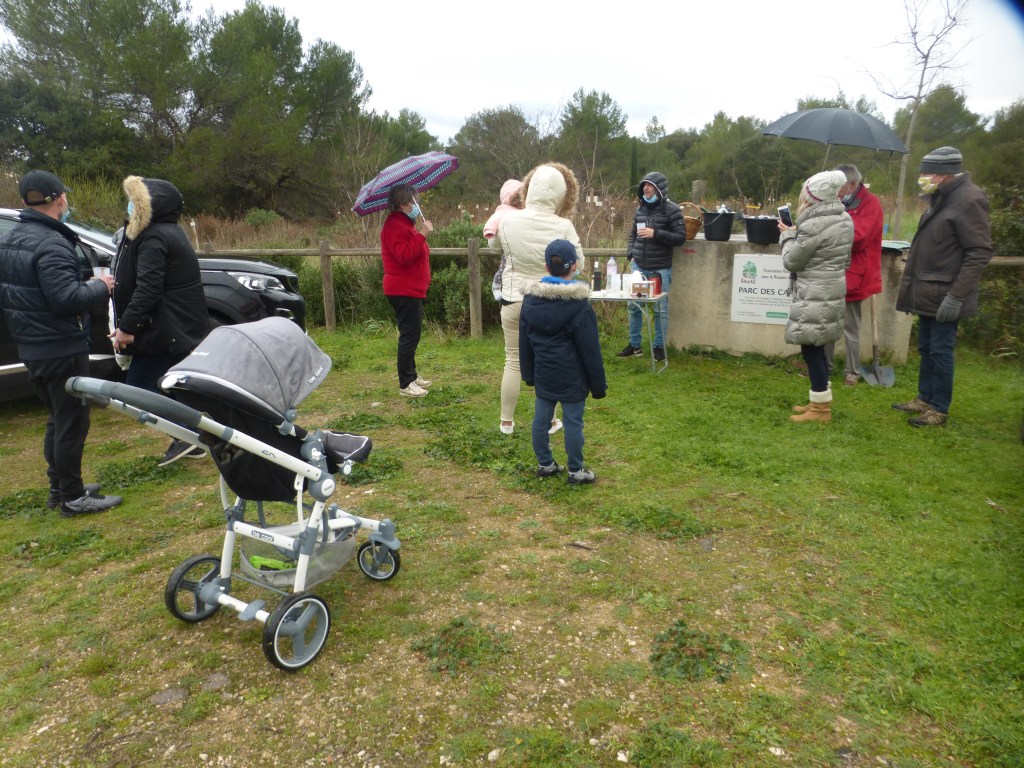 Les plantations effectuées, l’association a offert aux parents et aux enfants présents une collation -boisson chaude ou froide et pâtisserie maison-. Les échanges se sont poursuivis dans une ambiance conviviale et sous les regards bienveillants des promeneurs du dimanche. Un jeune couple de passage venant de St Géniès des Mourgues n’a pas hésité à venir découvrir le parc et l’association.