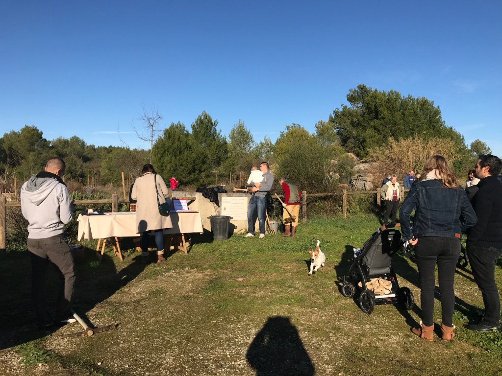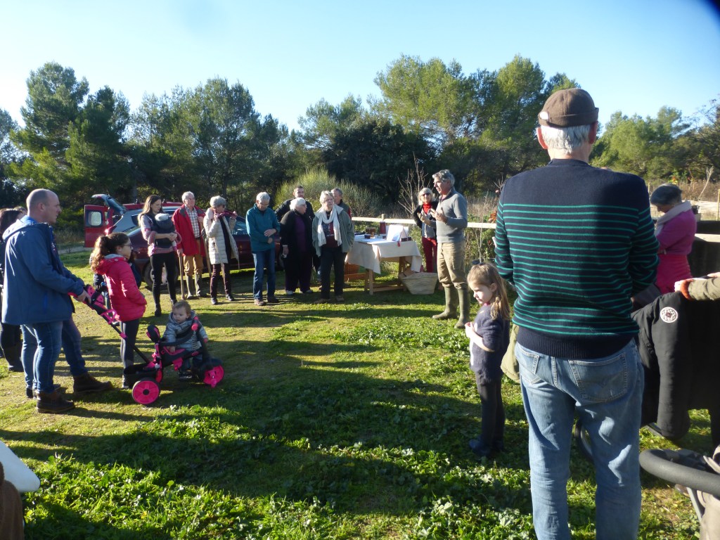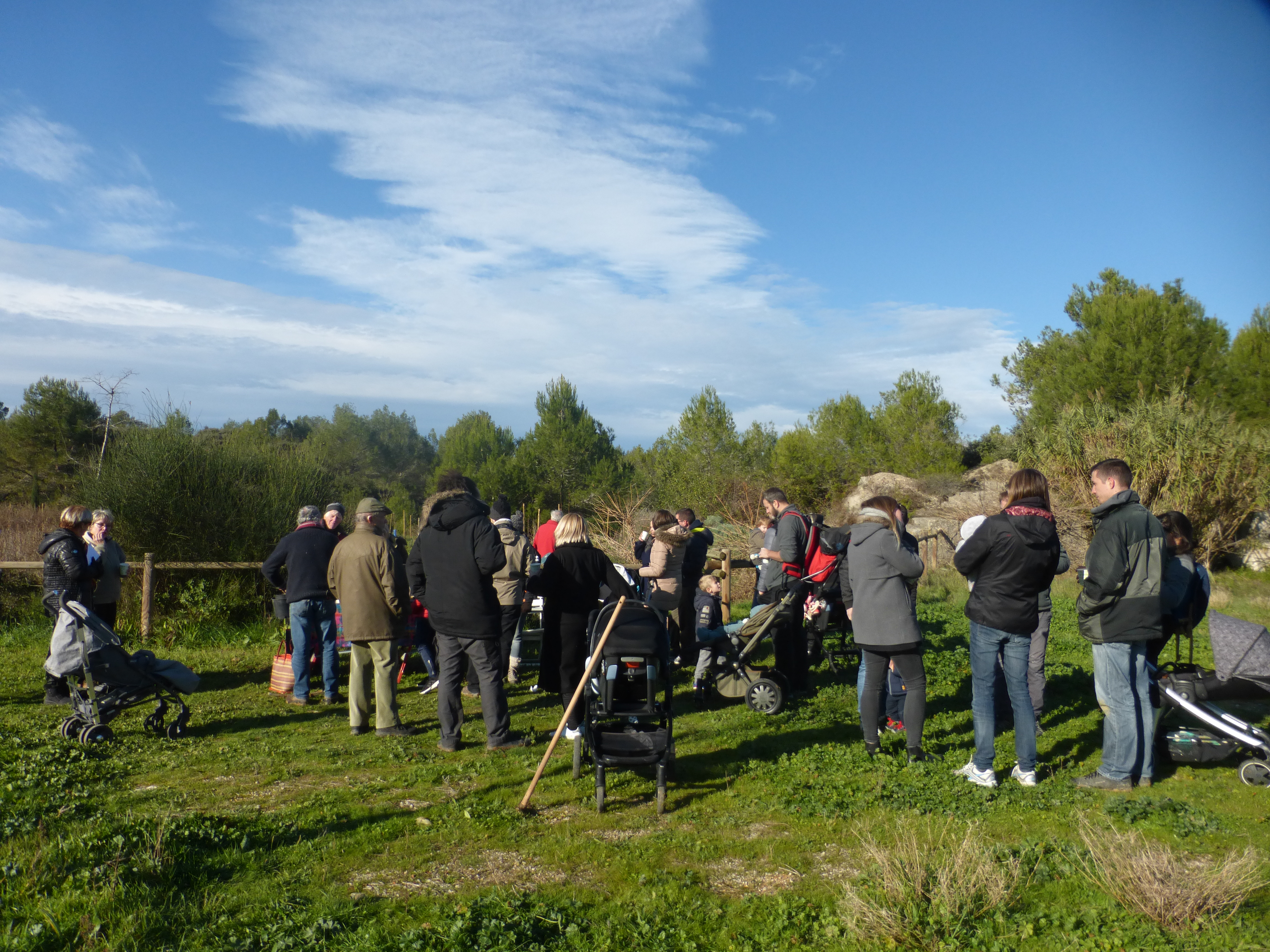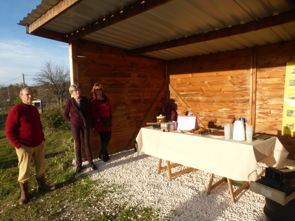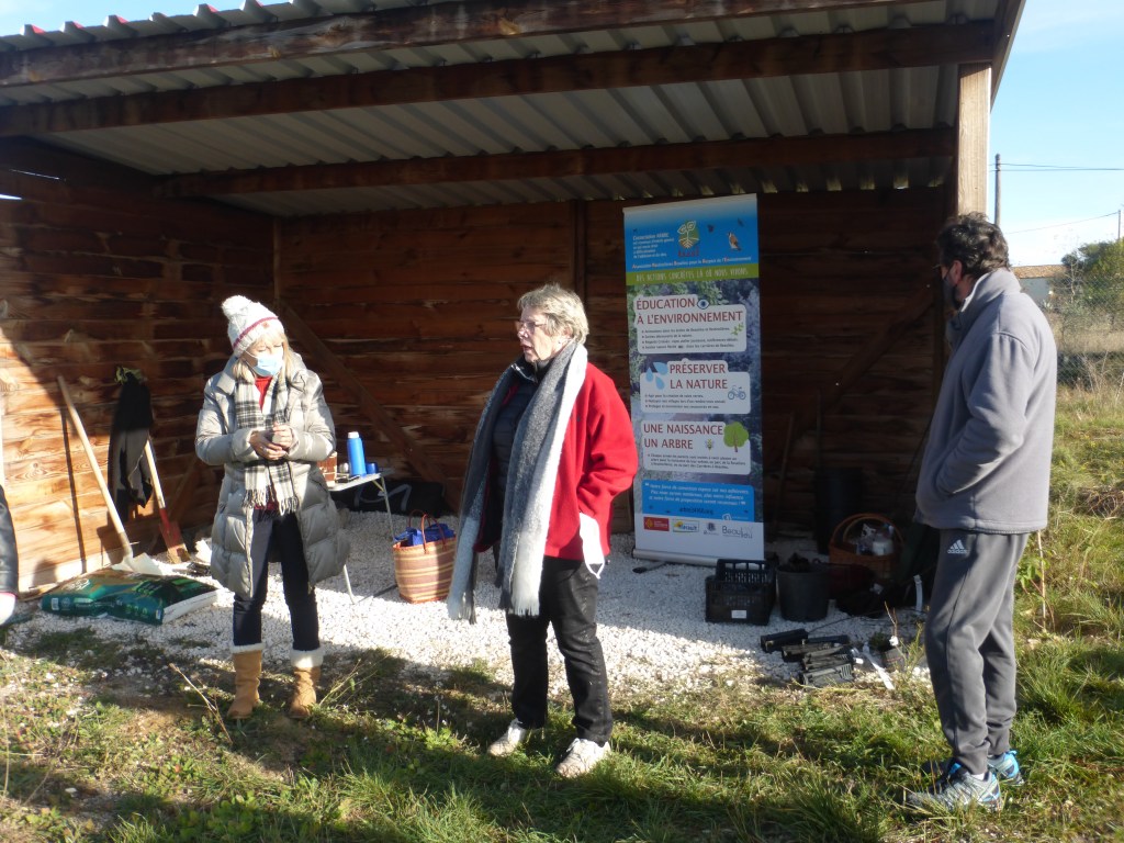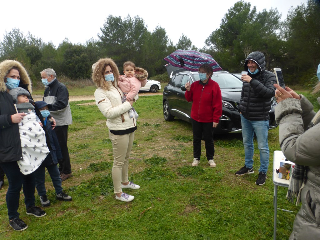 Les plantations effectuées, l’association a offert aux parents et aux enfants présents une collation -boisson chaude ou froide et pâtisserie maison-. Les échanges se sont poursuivis dans une ambiance conviviale et sous les regards bienveillants des promeneurs du dimanche. Un jeune couple de passage venant de St Géniès des Mourgues n’a pas hésité à venir découvrir le parc et l’association.