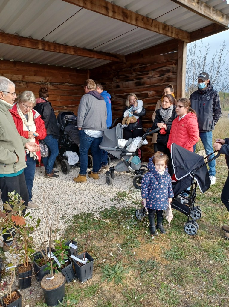 Une quinzaine de familles avaient bravé les températures glaciales en cette matinée de dimanche pour rejoindre au parc de la Roselière les bénévoles de l’ARBRE venus les aider à planter l’arbrisseau offert pour leur enfant né dans l’année.