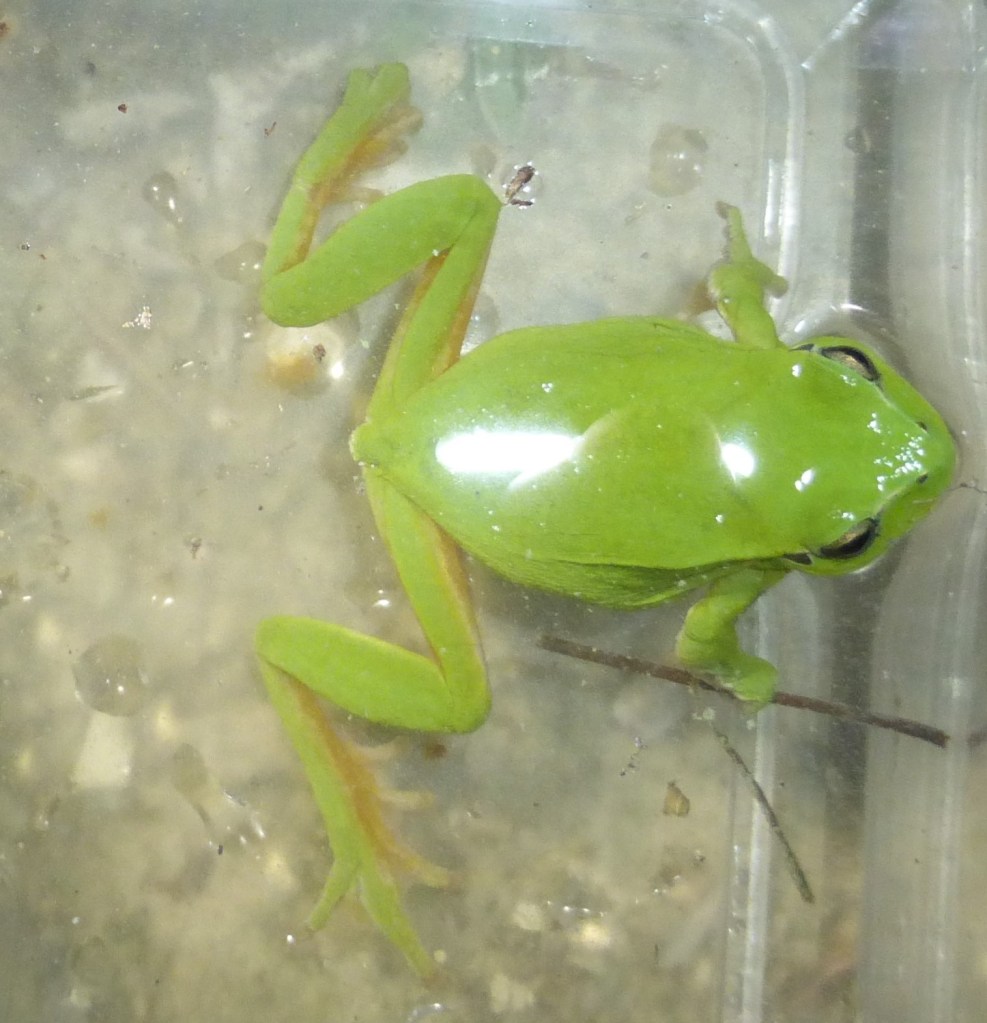 - La Rainette méridionale à distinguer de la Rainette verte, la première se caractérisant par une ligne noire qui s’arrête à mi-parcours ;