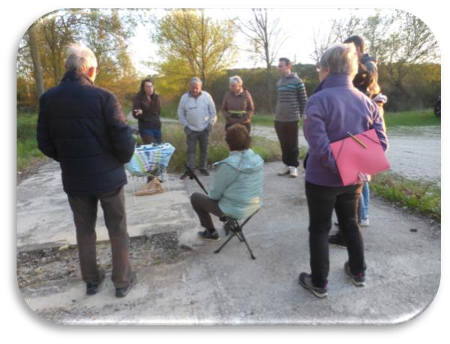 Pendant toutes ces explications le Petit Duc scop nous a accompagnés de son chant caractéristique. La fraîcheur du soir nous invite à nous déplacer pour tenter de découvrir le petit peuple des mares. Seule Aurélia est équipée pour s’approcher doucement de la mare accompagnée de sa petite assistante qui porte un aquarium de fortune destiné à recevoir très temporairement quelques échantillons. La pêche ne sera pas très riche à la différence des années précédentes.