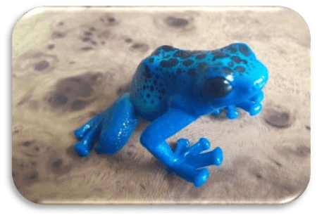 Aurélia fait remarquer que la taille du têtard ne détermine pas sa taille adulte, comme le têtard du Pélobate cultripède. Elle nous montre une réplique de Grenouille verte, de la Salamandre et d’une dendrobate tropicale bleue… magnifique !