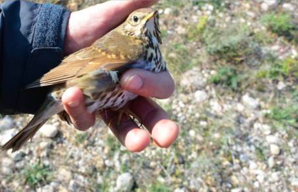 Un participant recueille une grive musicienne blessée mais encore bien vive.