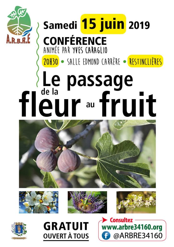 Rendez-vous le samedi 15 juin à 20h30 pour une mini-conférence. Yves Caraglio reprendra et approfondira le processus du passage de la fleur au fruit, salle Edmond Carrère (au-dessus de la bibliothèque) à Restinclières.