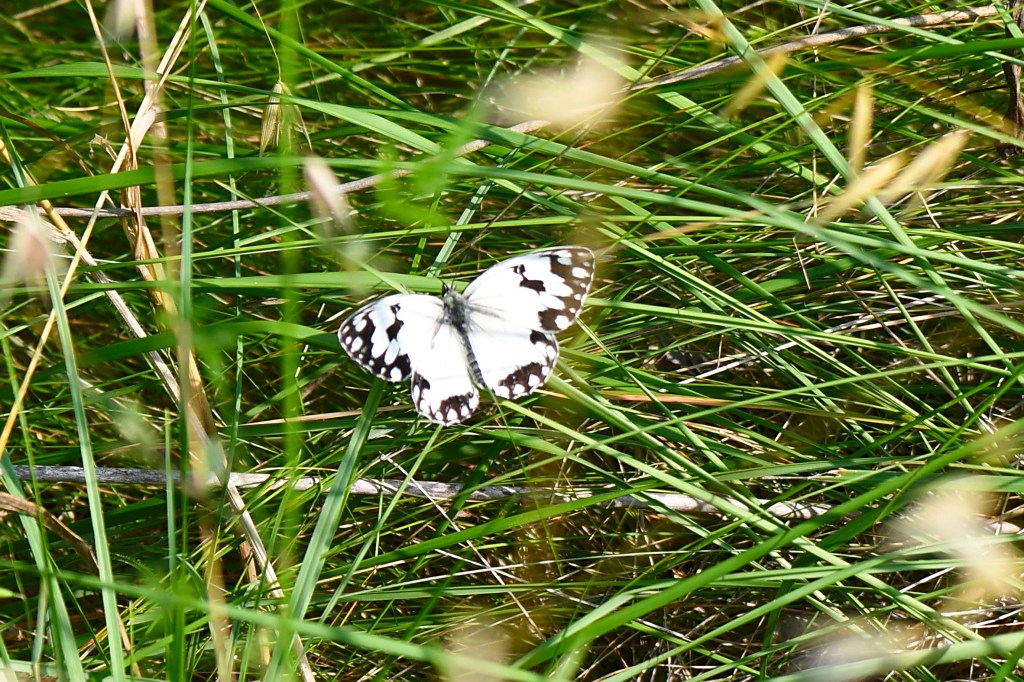 De retour au point de départ, nous sommes survolés par un Milan noir et une Bergeronnette grise vient se poser juste à côté de nous permettant une observation soutenue de cet oiseau qui agite constamment sa queue d’où son non vernaculaire de hoche-queue. Les différentes espèces de bergeronnette (grise, des ruisseaux et printanière) sont aussi appelées Lavandières.