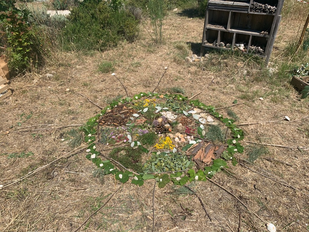 Pour terminer on observe dans un angle du préau un nid primaire de frelons qui ont migré vers un nid secondaire.