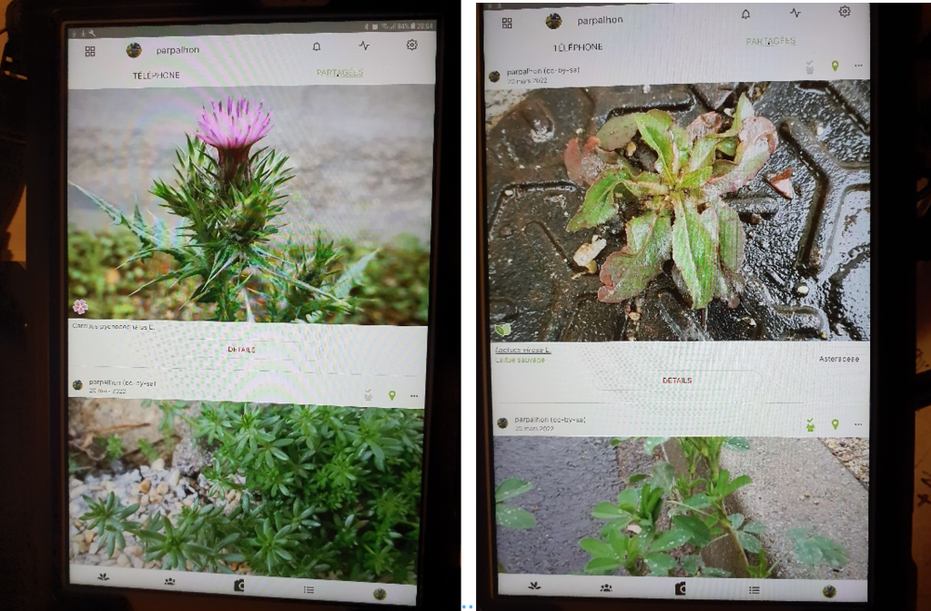 Chacun des participants, armé de son téléphone mobile et de l’application Pl@ntNet, a pu dénicher et identifier plus ou moins sûrement une vingtaine d’espèces sur quelques mètres linéaires de trottoir. La diversité sur ces zones a priori ingrates surprend toujours.