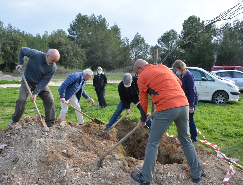 Quelques vaillants auditeurs manient la pelle pour combler cette fosse afin d’éviter la chute malencontreuse de quelques promeneurs distraits.