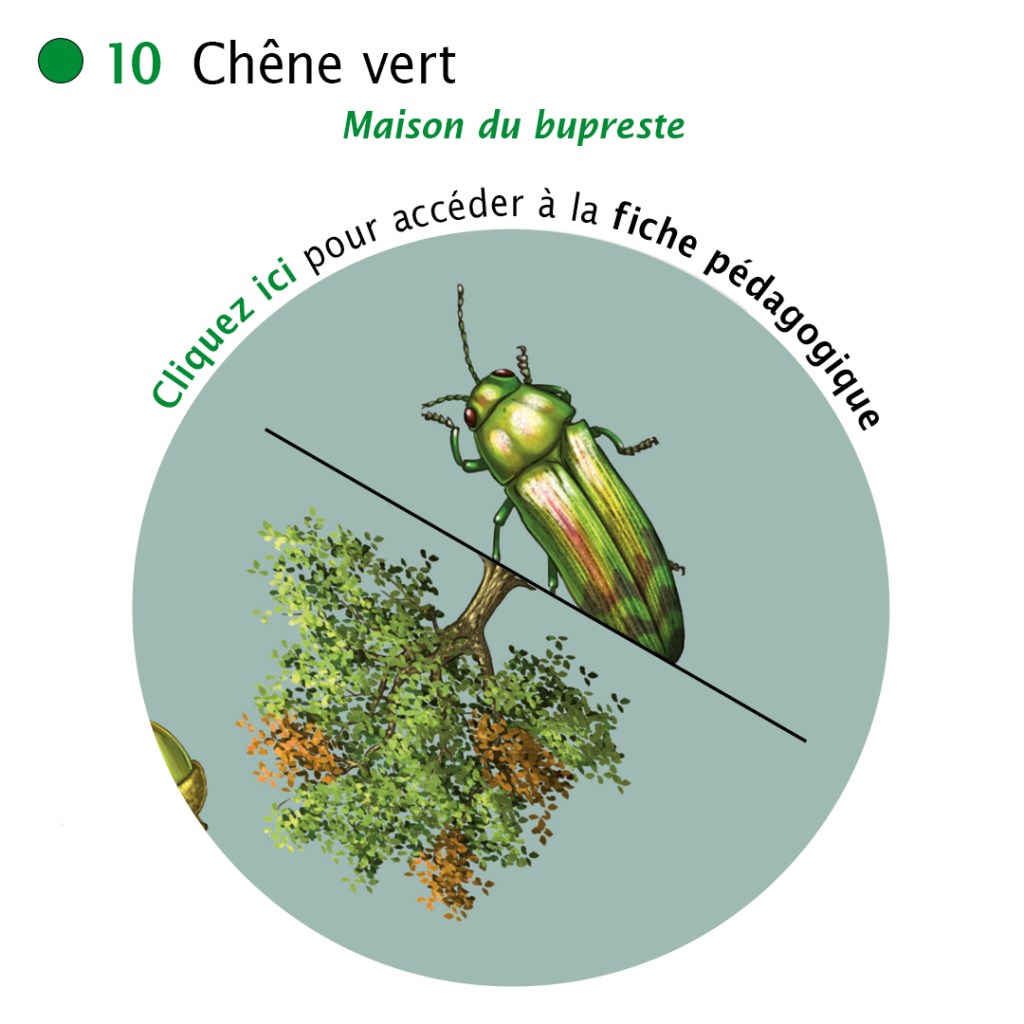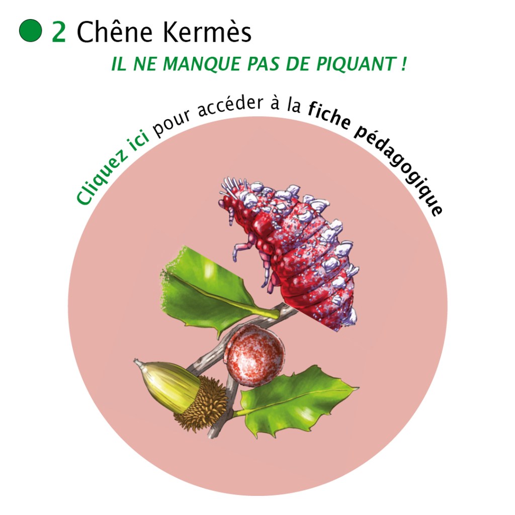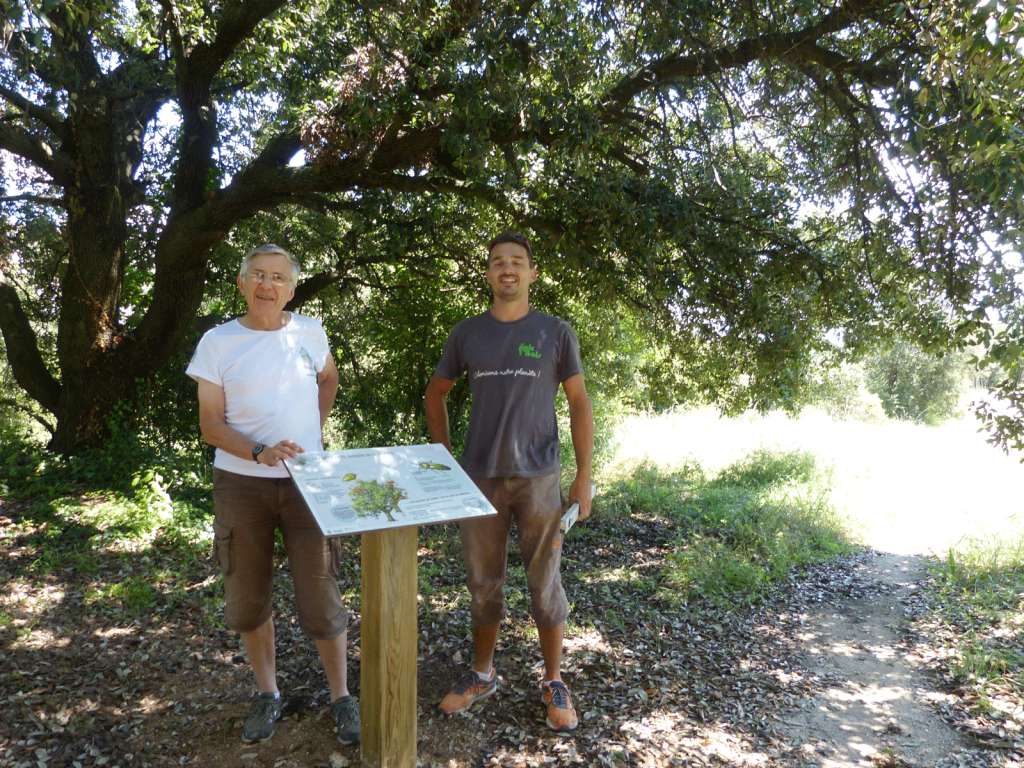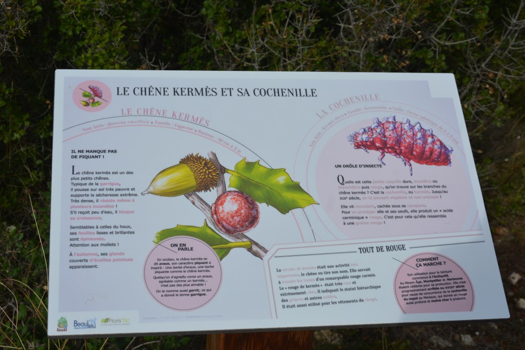 Avec les 50 mm de pluie tombée la nuit précédente, la nature avait repris du tonus comme les deux buissons de chêne Kermès correspondant au premier panneau portant sur la relation plante/insecte. Déjà grâce aux 20 mm de la dernière pluie, la sarriette avait refleuri.