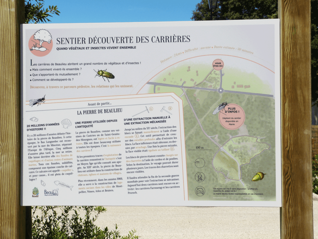 La pose des panneaux et le fléchage du sentier de découverte des carrières de Beaulieu se sont achevés mardi 12 juin 2018.
