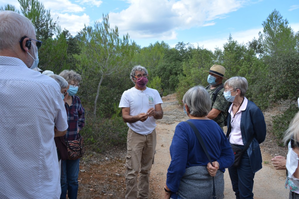 Le rendez-vous était fixé au parking du bois du Renard, en face du nouveau gymnase Edmonde Carrère. Yves Caraglio, botaniste et chercheur au CIRAD, a distribué des écouteurs et formé trois groupes de dix personnes. Le port du masque était obligatoire.