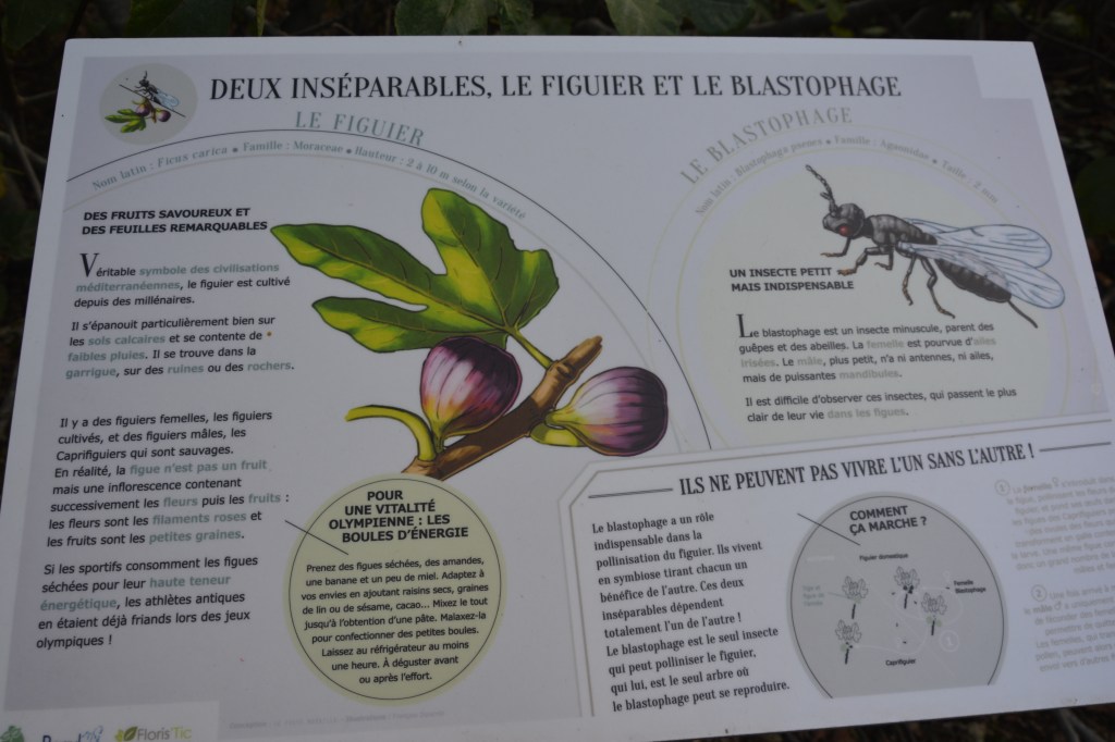 L’avant-dernier panneau concerne le figuier. Une animation en 2019 dans les écoles de Beaulieu et Restinclières a rencontré un beau succès et permis aux enfants de se familiariser avec la biologie de reproduction complexe du figuier.