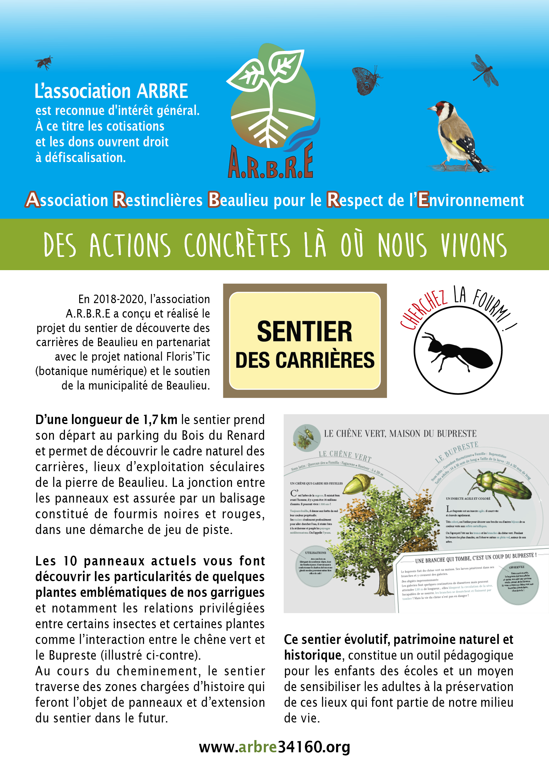 Le sentier nature a été initié par l’A.R.B.R.E. avec le soutien de la municipalité de Beaulieu et du programme national Floris’Tic.