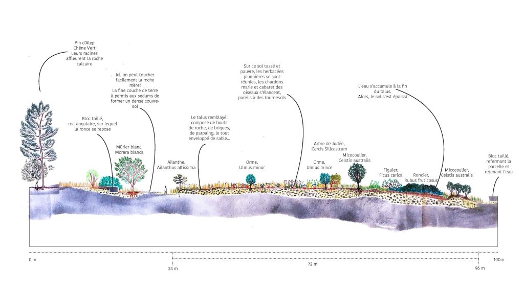 La restitution du travail préparatoire réalisé par les deux étudiantes Alice Migeon et Delphine Tourte de l’École du Paysage de Versailles (antenne de Marseille) qui étaient sur le terrain du 19 juin au 4 août 2023 guidées par leur maître de stage Cécil’ MERMIER, Paysagiste-conceptrice & Urbaniste.