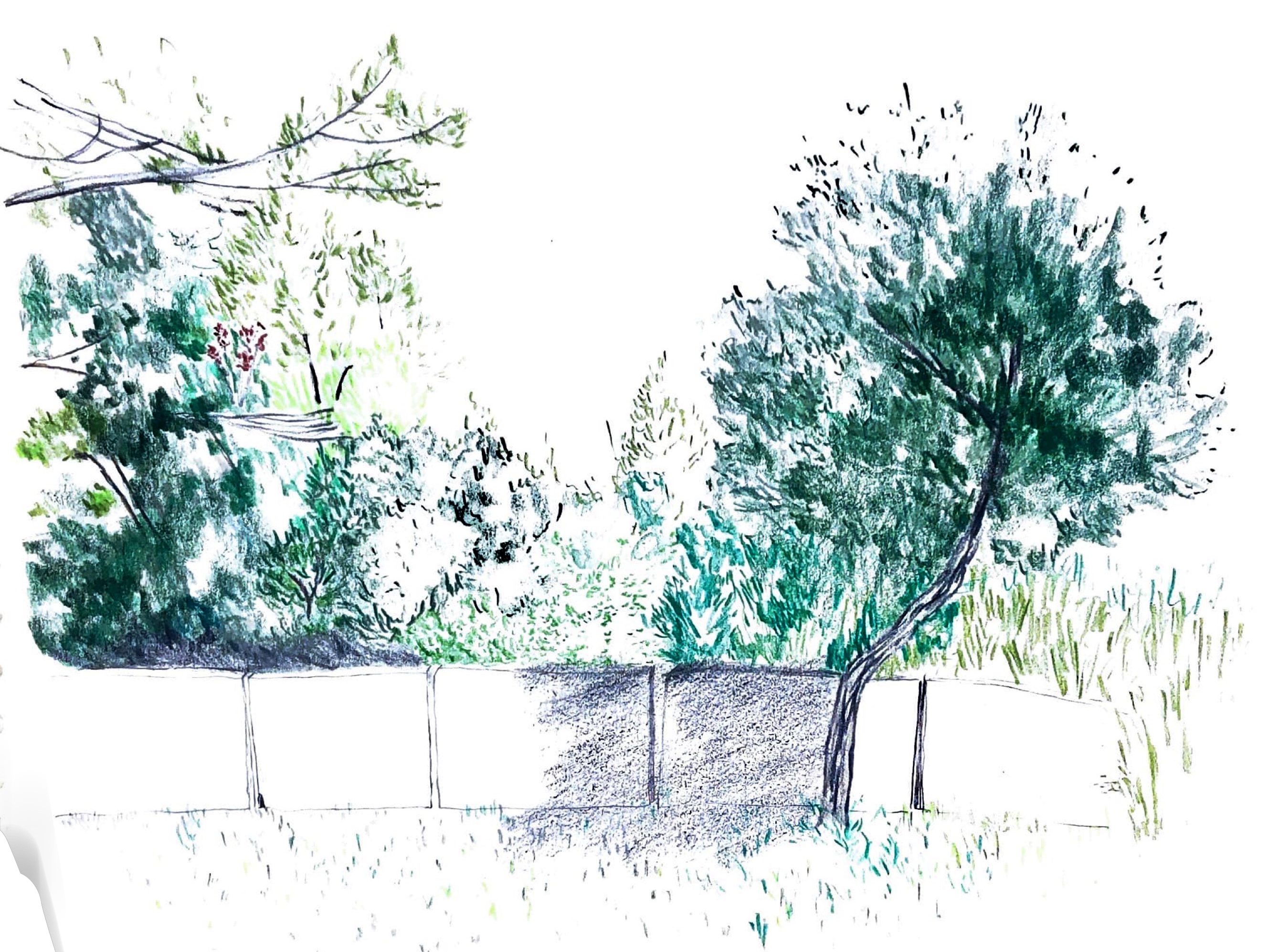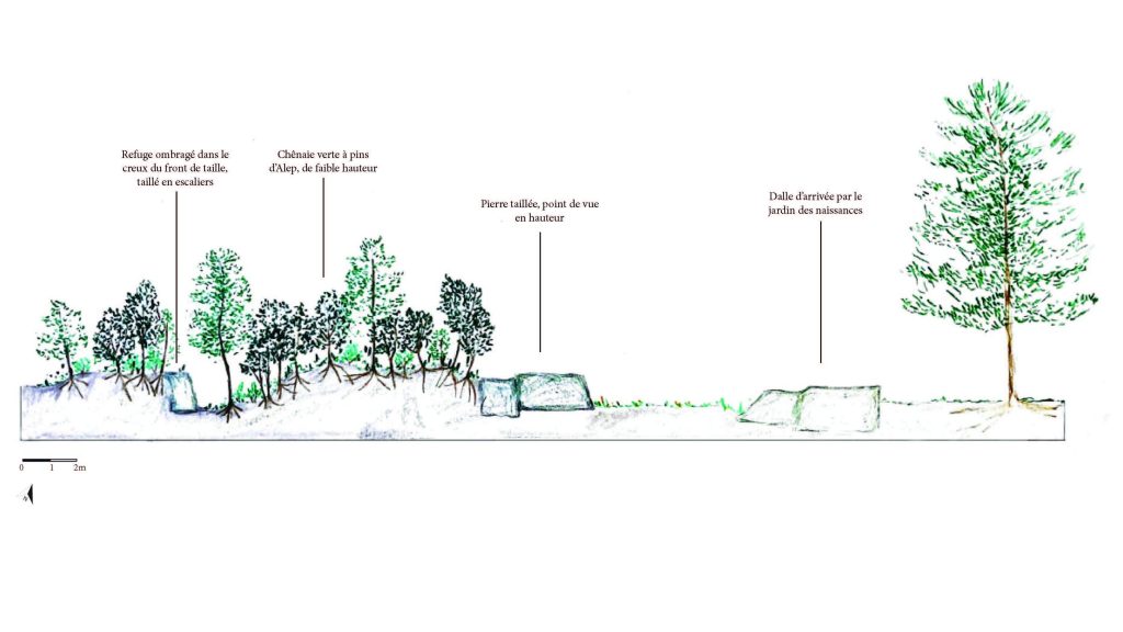 L’endroit est très joli côté falaise et on pourra prévoir des ouvertures de points de vue. Une clôture sera installée pour protéger le jardin du passage d’animaux.