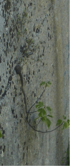 Dans la profondeur d’une ancienne carrière la végétation s’est développée grâce à l’accumulation de l’eau au sol. Un saules’est implanté. Un figuier est en survie. Il ne se reproduira pas. On peut voir sur un mur un figuier avec une boule. Il n’a pas pu développer un système racinaire normal. A cet égard Yves rappelle que le figuier est présent dans le monde entier sauf en Nouvelle-Zélande. Si les figues sont toutes comestibles, elles ne sont pas toutes gustatives.
